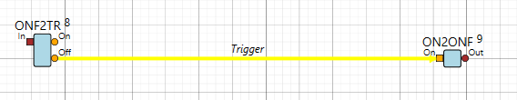 Wires can be created by dragging them from an output interface (circle) to an input interface (square).